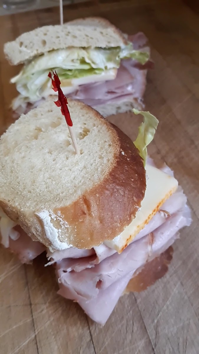 Hidden Gem Alert!!! WHOA!!! This place is legit a fabulous sandwich shop!! I grabbed a sandwich for my flight and was very pleased with all the options. The menu is a little hard to read cause there is so much on it, but once you figure it out, it’s great! I got the salami sandwich with provolone cheese, Mayo, lettuce, tomatoes and a pickle on the side. The sandwich was filled with tons of Salami and the French Roll was PERFECT!! Those will now be my fave sandwich place! They also have a small grocery store and a pastry counter. Definitely go take a look!!